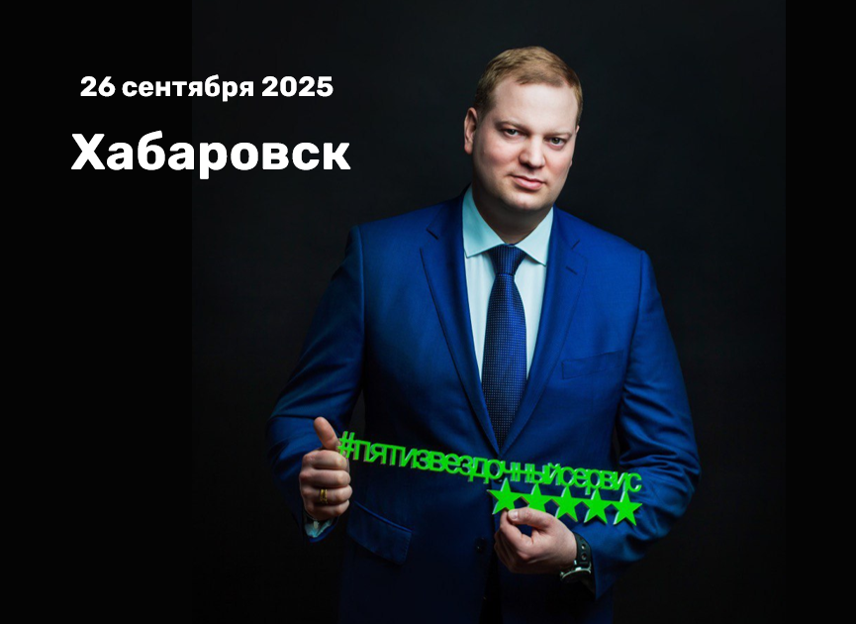 26 сентября 2025 Евгений Горянский проведет в Хабаровске открытый тренинг "Пятизвездочный сервис" при поддержке компании "Успех".